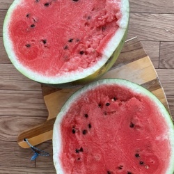 すいか 2025年08月17日 5月の末にすいかの苗を一本畑に植えた。過去にも一度植えたことがあったけれど、実ってもカラスに食べられてしまったり、無事な玉も味がいまいちだったりと満足なスイカではなかったのだ。今回は一本だけにして(それでもけっこうな面積を要するのよ〜!すいかって)一本の精 ... もっと読む