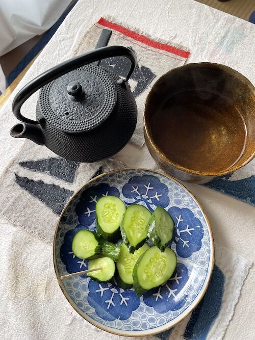 あれ!婆さんぽすぎない?漬物と熱いお茶でひと休みって。